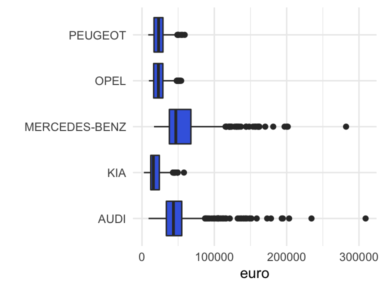 bivariaat | categoriaal - numeriek | side-by-side histogram; boxplot |