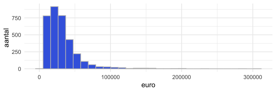 geom_histogram(fill = 'royalblue', col='grey', bins=30) +